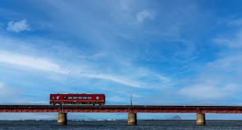 「由良川橋梁」大解剖〜青い空、青い川の上に溶け込むように走る列車〜